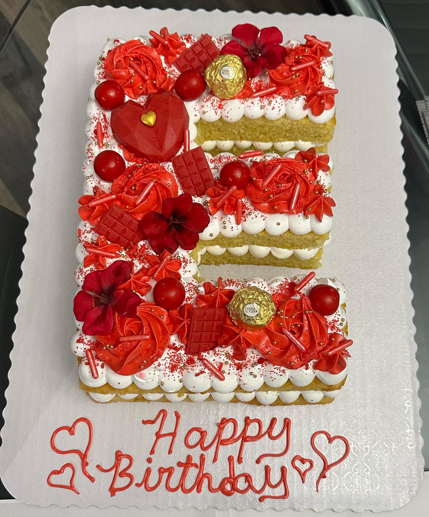 **Vendor will contact you after deposit is paid for Cake Design and Flavors.** Make a statement with our Single Letter Flower Design Cake, where elegance meets personalization. This cake features a single letter of your choice, beautifully adorned with intricate floral details. It's a tasteful way to celebrate a special someone, honor a name or initial, or add a personalized touch to any occasion. With its timeless design and delicious flavors, this cake is sure to leave a lasting impression on both the eyes and the taste buds of your guests.